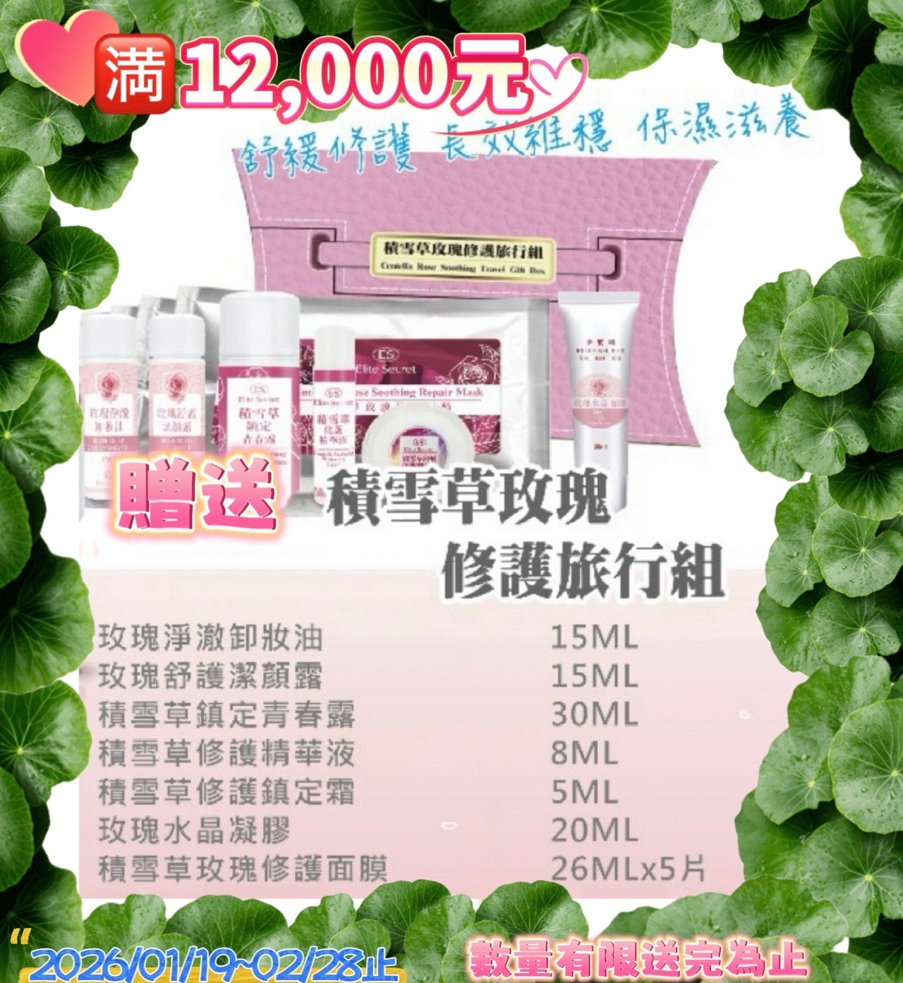 2026新春滿額贈12000禮-積雪草玫瑰修護旅行組